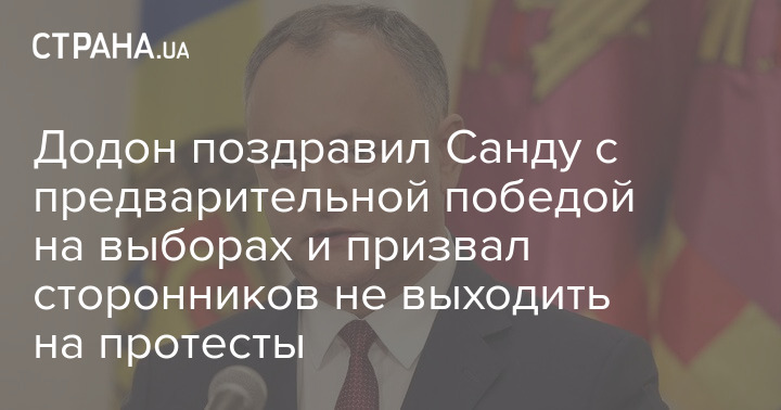 "Предварительные результаты показали, что Майя Санду одержала победу. Я поздравляю ее с предварительной победой, но точка в избирательном процессе будет поставлена, когда будут проверены все сообщения о нарушениях", – заявил Додон.
