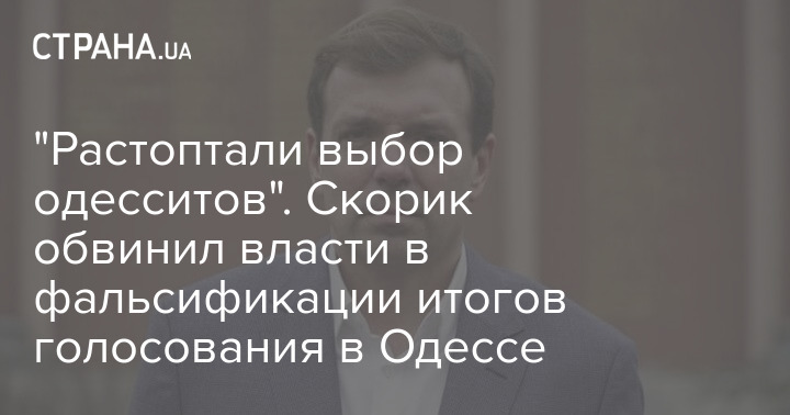 Народный депутат от "Оппозиционной платформы - За жизнь", кандидат в мэры Одессы Николай Скорик заявил, что "власть растоптала выбор одесситов", поскольку во время выборов была фальсификация и кража голосов.