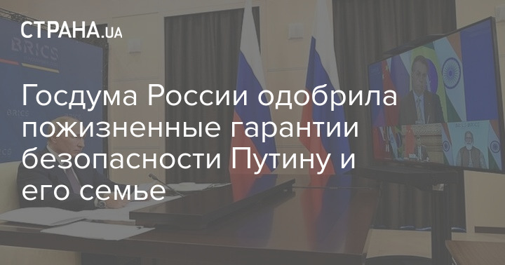 Госдума России одобрила пожизненные гарантии безопасности Путину и его семье