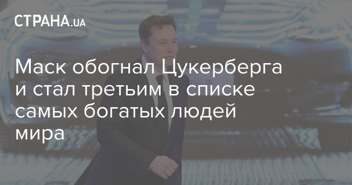 Основатель компании электромобилей Tesla Inc. и космической техники SpaceX Илон Маск занял третье место в мировом списке богачей, обогнав создателя Facebook Марка Цукерберга.