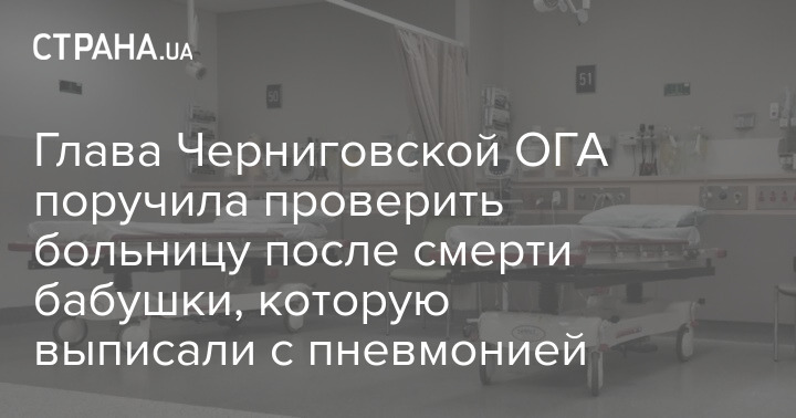 Губернатор Черниговской области Анна Коваленко поручила провести неотложную проверку КНП "Бобровицкая центральная районная больница" после обнародования в СМИ информации о смерти пожилой пациентки.