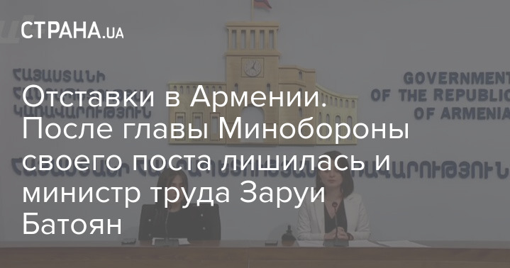 После заявления об отставке главы Минобороны Армении, министр труда и по социальным вопросам Заруи Батоян также уволена со своей должности.
