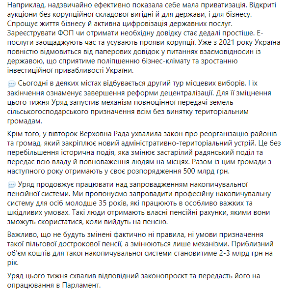 "Мы уже провели по этому поводу два совещания с городскими головами, встретились с Советом церквей и религиозными организациями, чтобы выработать совместный, взвешенный и поддерживаемый всеми план. Также на этой неделе обсудили с украинским бизнесом механизмы поддержки отраслей, на которых ограничения сказываются больше всего", - говорит Шмыгаль.