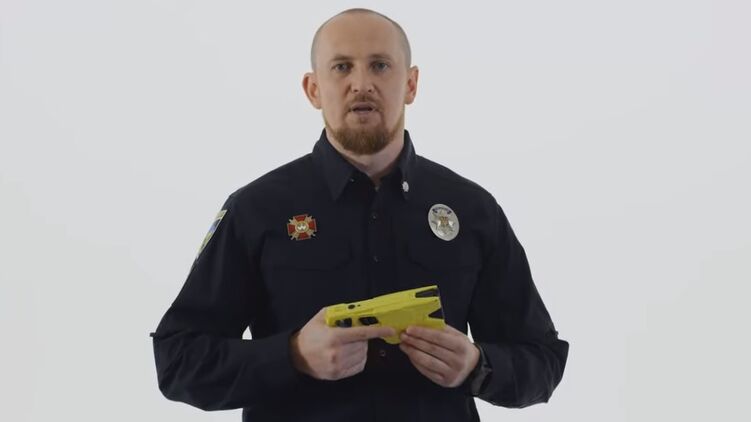 "Сегодня это безопасный способ остановить правонарушителя... Использование Taser одобрило министерство охраны здоровья Украины"- сказал Жуков и протестировал его на себе.