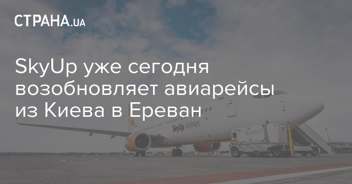 Украинская авиакомпания SkyUp с 23 ноября возобновляет полеты в Ереван (Армения). В понедельник самолет отправляется из Киева в 23:45, а возвращается из Еревана 24 ноября в 05:30.