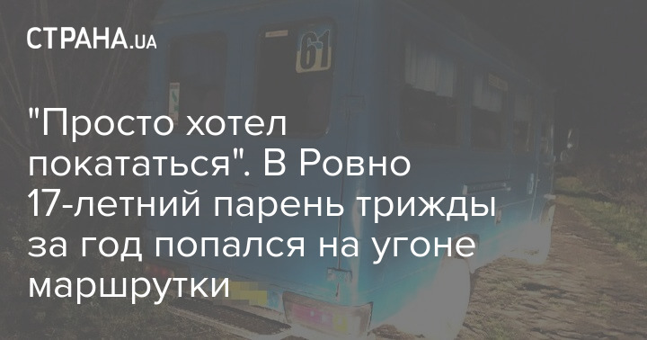 В Ровно 17-летний парень трижды попался на похищении маршрутки. Вечером 21 ноября он угнал транспорт со стоянки на улице Макарова, открыв дверь и взяв ключи в бардачке.