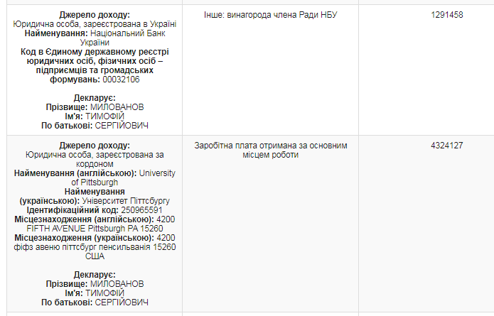 За работу в американских университетах и в НБУ получил несколько миллионов гривен.