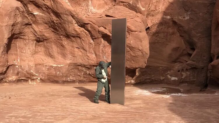 Сотрудники Управления общественной безопасности американского штата Юта обнаружили в пустыне металлическую конструкцию в форме монолита высотой в 3,6 метра. Власти не знают, как загадочный объект там оказался.