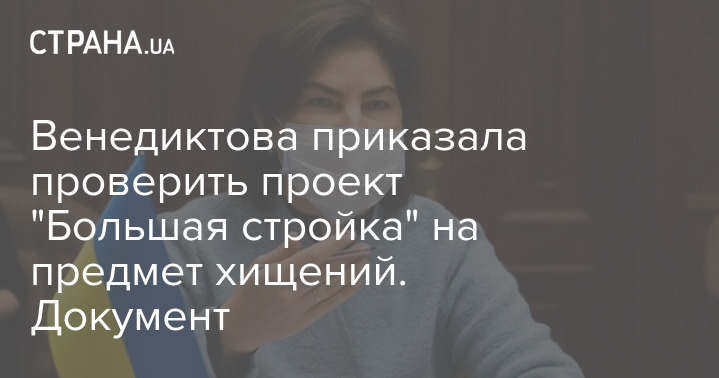 Генпрокурор Ирина Венедиктова направила письмо руководителям областных прокуратур с заданием изучить законность использования бюджетных средств, предусмотренных для строительства, ремонта и содержания автомобильных дорог в рамках "Большой стройки".