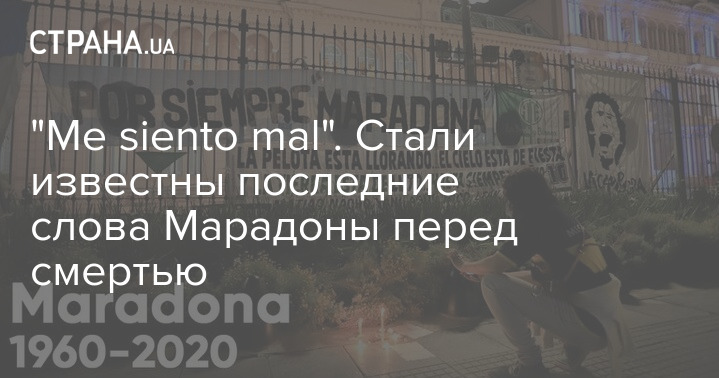 Как выяснилось, Марадона вчера проснулся, позавтракал и вернулся в постель. После чего произнес свои последние слова: "Me siento mal" ("Мне нехорошо" - Ред.).