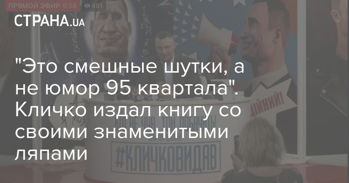"Я все же выдал самоироничную книгу со своими известными цитатами. Она яркая, веселая, позитивная. Скажу, как человек, который умеет посмеяться над собой, не обижаться на шутки над собой. На смешные шутки - я не имею в виду так называемые шутки "95 квартала", - сказал Кличко.