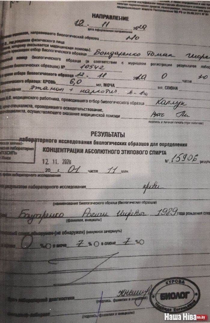 Другие соседи говорят, что Бондаренко "профессионально задержали" и увезли на микроавтобусе. В больницу он якобы поступил из Центрального РУВД Минска с формулировкой, что "травмы получил во время драки".