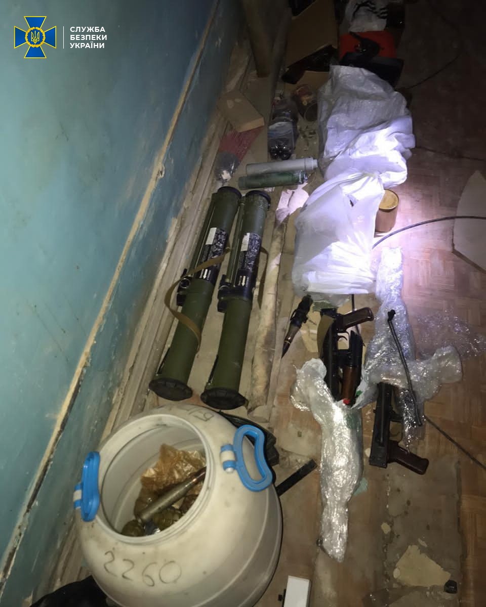 Правоохранители уже идентифицировали и изъяли 4 РПГ, 2 автомата, почти 40 гранат РГД-5 и Ф-1, несколько пистолетов, 2 артиллерийских снаряда и большое количество патронов к автоматическому оружию", – говорится в сообщении СБУ.