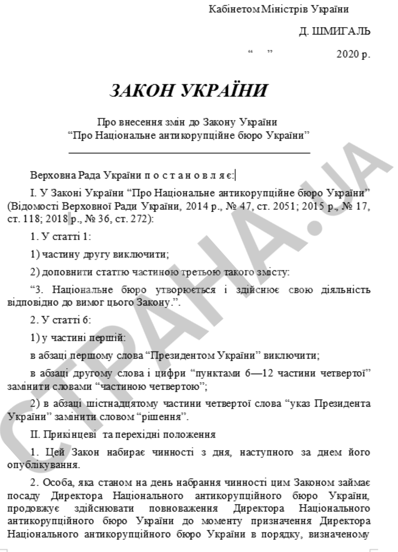 В распоряжении "Страны" оказался законопроект по НАБУ, который вчера, 26 ноября, одобрили на заседании Кабмина.