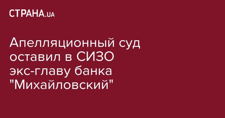 Апелляционный суд Киева оставил под стражей на время проведения расследования экс-председателя правления банка "Михайловский", которого подозревают в хищении 870 млн грн и доведении банка до банкротства. Об этом сообщает пресс-служба прокуратуры Киева.