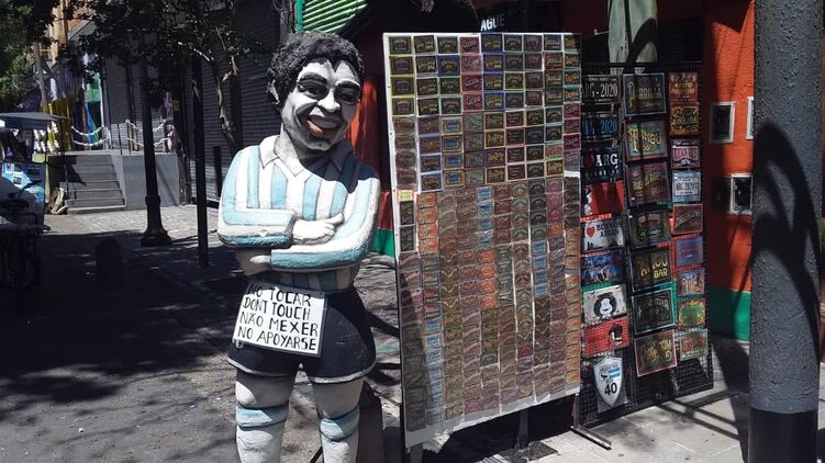 Поклонники Марадоны разместили у стадиона цветы, символику клуба, плакаты, фотографии. А в самом районе Ла Бока собираются обновить и подкрасить уже имеющиеся граффити с Марадоной. Торговцы тем временем зазывают прохожих купить футболки с его изображением или сфотографироваться с его статуей.