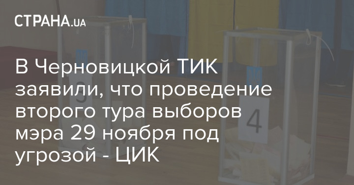Черновицкая городская территориальная комиссия (ТИК) обратилась в Центральную избирательную комиссию (ЦИК) заявив об угрозе надлежащей организации и проведения голосования во время второго тура выборов мэра Черновцов 29 ноября.