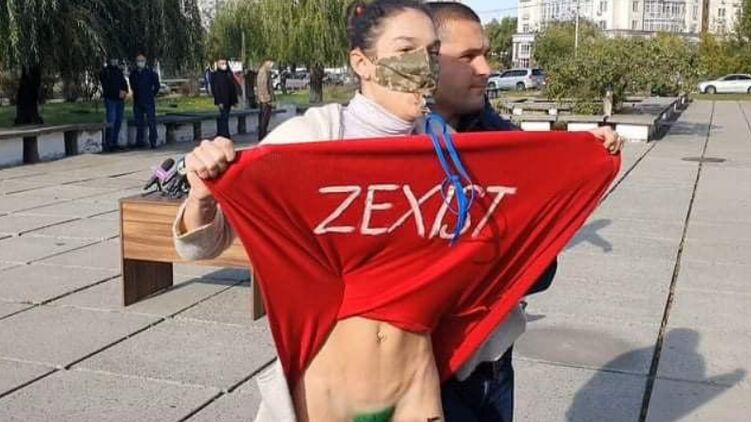 Секстремистку Femen, которая задрала юбку перед Зеленским, оштрафовали на 85 гривен