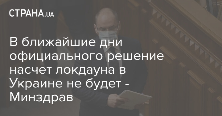 Министр здравоохранения Максим Степанов заявил, что вопрос локдауна в Украине не выносят на заседание Кабинета министров 2 декабря. Соответственно, в ближайшие дни официального решения еще не будет.