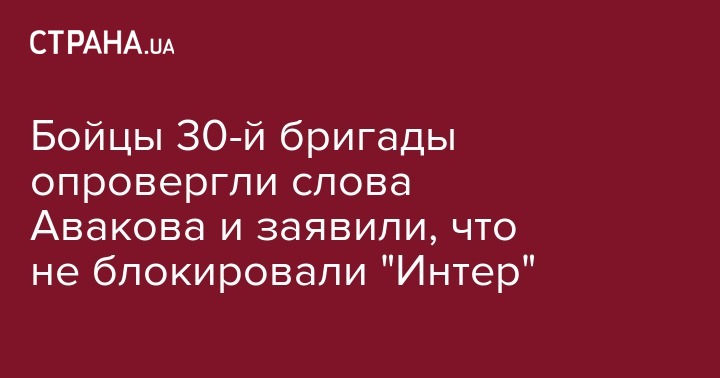 30 отдельная гвардейская механизированная бригада Вооруженных сил Украины опровергла заявление министра внутренних дел Арсена Авакова об участии экс-бойцов в нападении на телеканал "Интер" в воскресенье. Об этом сообщается на странице 30 бригады в Facebook.