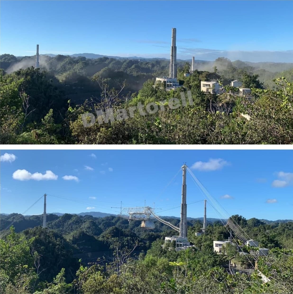 Обсерватория разрушилась после того, как на нее упал облучатель антенны. 900-тонная платформа приемника телескопа упала на тарелку рефлектора.