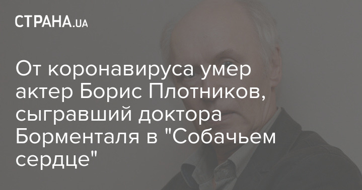 В России на 72 году жизни скончался народный артист РФ Борис Плотников, известный по роли доктора Борменталя в фильме "Собачье сердце". Об этом сообщает ТАСС со ссылкой на ректора ГИТИСа Григория Заславского.