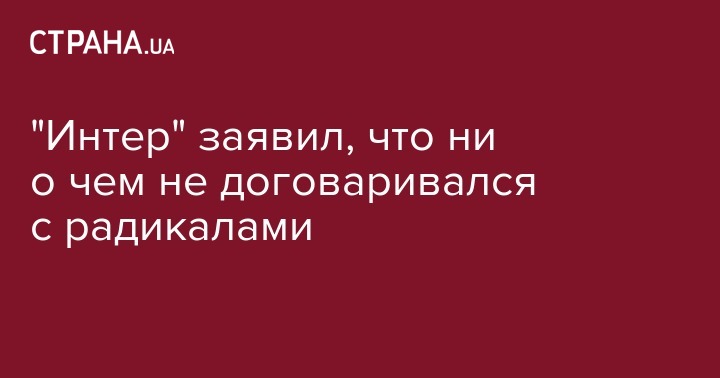 "Телеканал "Интер" ни о чем не договаривался с лицами, блокировавшими работу телецентра, и не вел никаких переговоров с радикалами. Мы заявляем о недопустимости преследований по политическим мотивам со стороны политиков из Народного фронта, министра МВД и связываем давление на канал со своей профессиональной деятельностью, - говорится в сообщении. - Мы благодарны за вмешательство Президенту П.А.Порошенко, за его поручение генпрокурору Ю.В.Луценко объективно расследовать террористическую атаку и поджог компании "Национальные информационные системы", производящей информационные программы для телеканала "Интер". Мы благодарны всем зарубежным партнёрам Украины, международным журналистским организациям, всем, кто осудил насилие и поддержал журналистов нашего канала. Мы требуем объективного публичного расследования террористической атаки и поджога, совершенных 4 сентября, блокирования главного телецентра "Интер Медиа Груп", незаконного препятствования профессиональной деятельности журналистов 5-6 сентября и привлечения виновных к ответственности независимо от их должностей".