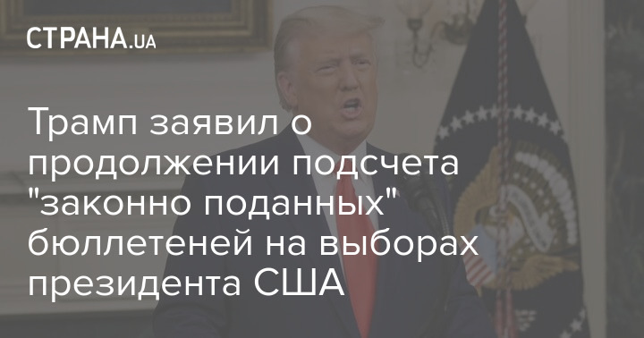 Действующий президент США Дональд Трамп дал почти часовой брифинг. Во время выступления он заявил, что процесс подсчета голосов на выборах должен продолжаться, и пообещал обеспечить подсчет всех законно поданных бюллетеней.