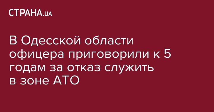 В Одесской области офицера отдела комплектования Овидиопольского районного военного комиссариата приговорили к 5 годам лишения свободы за отказ служить в зоне проведения антитеррористической операции.