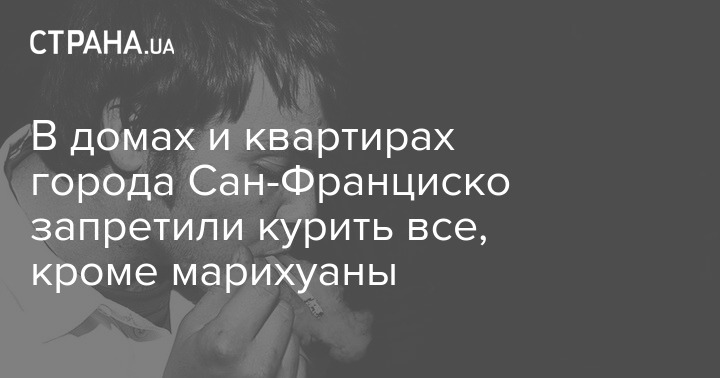 Власти Сан-Франциско (штат Калифорния, США) запретят курение табака и даже электронных сигарет в квартирах, чтобы защитить некурящих жильцов от пассивного вдыхания дыма. Исключение оставят только для каннабиса.