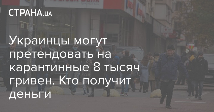 Украинцы могут претендовать на карантинные 8 тысяч гривен. Кто получит деньги