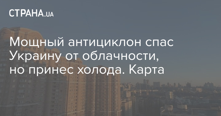 Мощный антициклон спас Украину от облачности, но принес холода. Карта