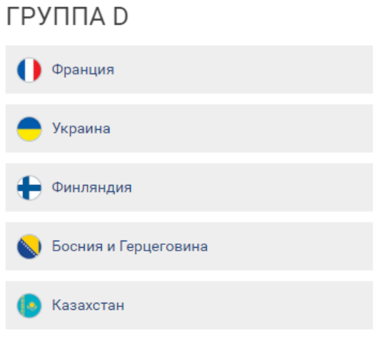 Группа D: Франция, Украина, Финляндия, Босния и Герцеговина, Казахстан