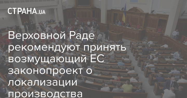 Верховной Раде рекомендуют принять возмущающий ЕС законопроект о локализации производства