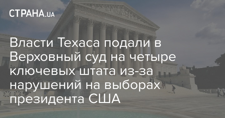 Власти штата Техас подали прямой иск в Верховный суд США против ряда штатов из-за нарушений, которые якобы были допущены во время голосования на выборах президента США.
