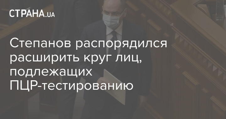 Министр здравоохранения Украины Максим Степанов дал распоряжение расширить круг лиц, которые подлежат тестированию на коронавирус методом ПЦР и экспресс-тестированию на антигены.