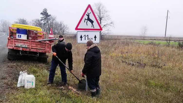 Так, в нескольких местах на обочине трассы государственного значения "Киев-Овруч" были установлены предупреждающие о местах обитания и миграции дорожные знаки.