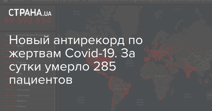 По состоянию на утро пятницы, 11 декабря, количество зараженных коронавирусом в Украине увеличилось на 13 514 человек. Число летальных случаев составило за сутки 285, и это снова печальный рубеж. Предыдущий антирекорд по смертям был отмечен 9 декабря, когда за сутки от коронавируса умерли 276 человек.
