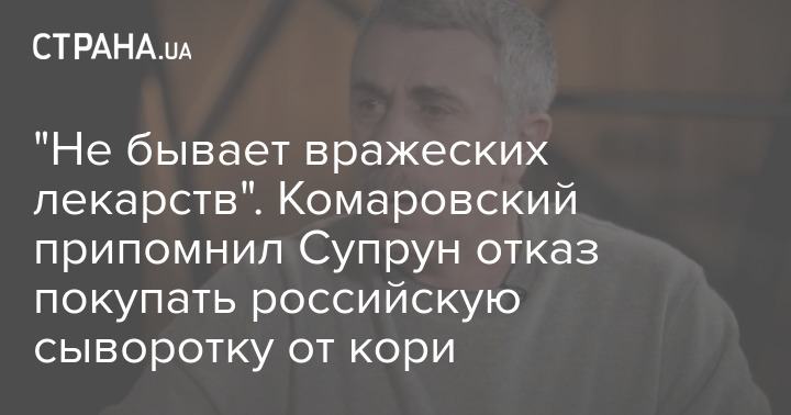 "В разгар, когда я писал об этом всем, писал госпоже Супрун, апеллировал ко всем: ребята, вы охренели вообще? Не бывает лекарства вражеского или невражеского. Есть лекарство, которое лечит и которое не лечит. В Европе сыворотки есть только российского производства. Ну нет других, можете головой об стенку биться. Когда в Испании человек заболел дифтерией, так сыворотку из Москвы везли. В страну НАТО везли сыворотку из Москвы. Ну нет у вас других вариантов! Но они тогда покупали по цене 100 тысяч гривен за дозу сыворотки, канадцы дарили, когда российская цена была 350 гривен. А они покупали за 100 тысяч. Я не придумываю. Это был дар: правительство Канады подарило нам 100 доз сыворотки за 30 миллионов", - напомнил Комаровский.