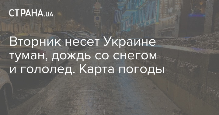 Вторник несет Украине туман, дождь со снегом и гололед. Карта погоды
