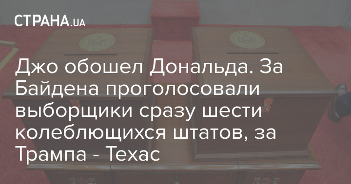 Джо обошел Дональда. За Байдена проголосовали выборщики сразу шести колеблющихся штатов, за Трампа - Техас