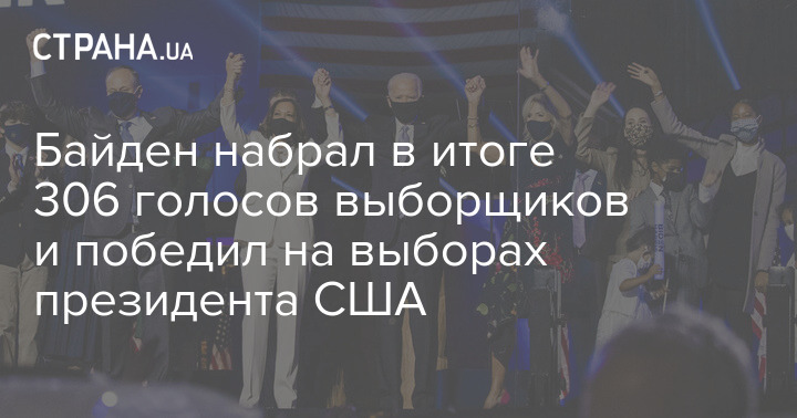 По итогам голосования выборщиков США кандидат в президенты от демократов Джо Байден набрал 306 голосов выборщиков при необходимом минимуме в 270 голосов. Таким образом он победил в выборах.