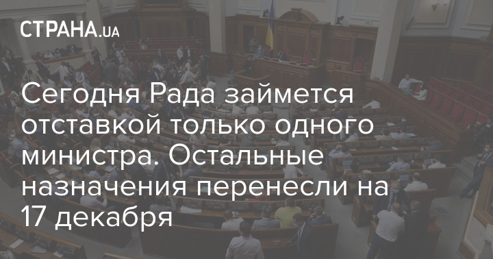 По его словам, на 16 декабря в повестке дня пленарного заседания Рады только один кадровый вопрос - заявление об отставке министра по делам ветеранов Сергея Бессараба.