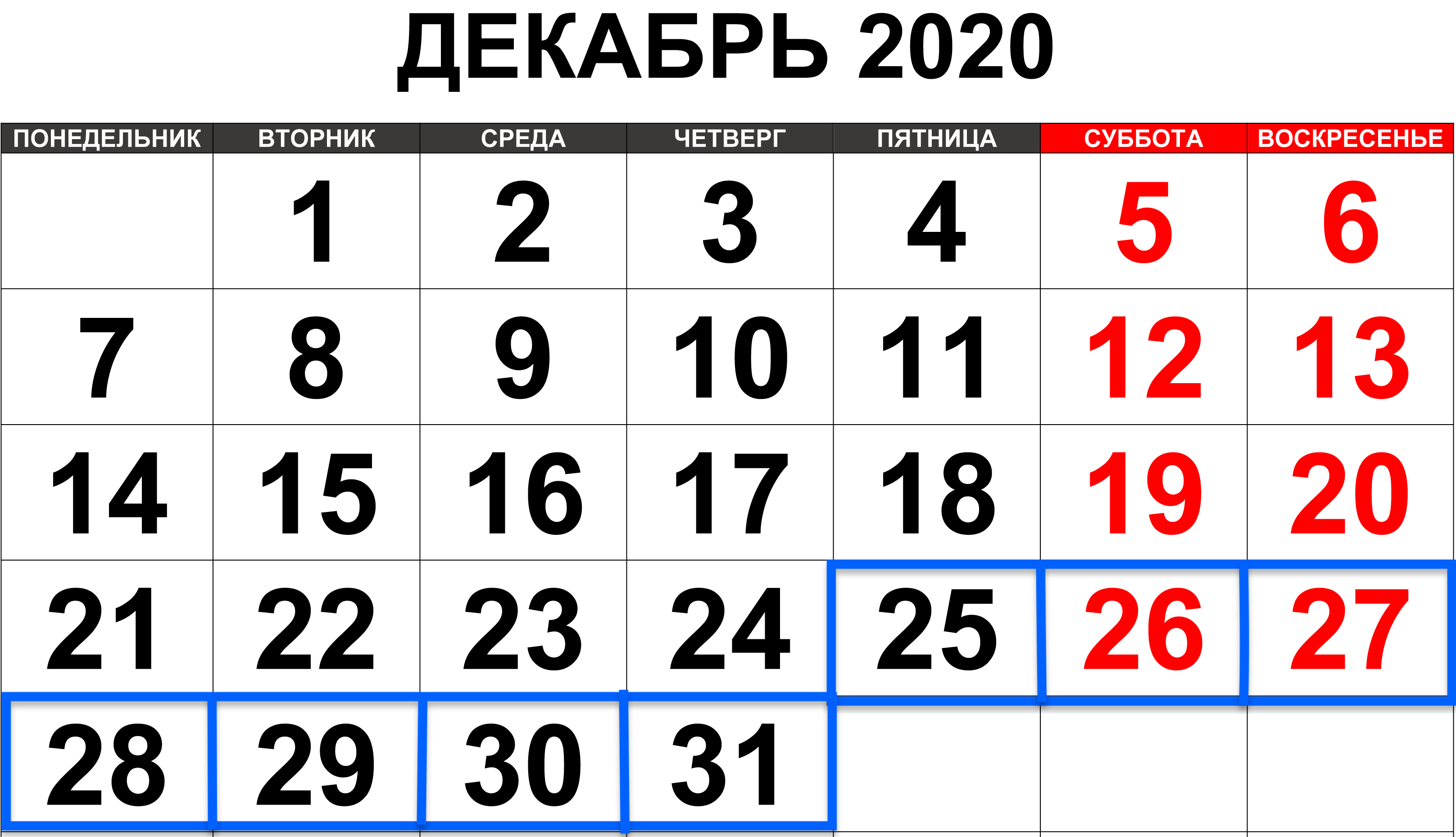Отдельно мы опубликовали ключевые даты новогодних праздников 2020 - 2021: