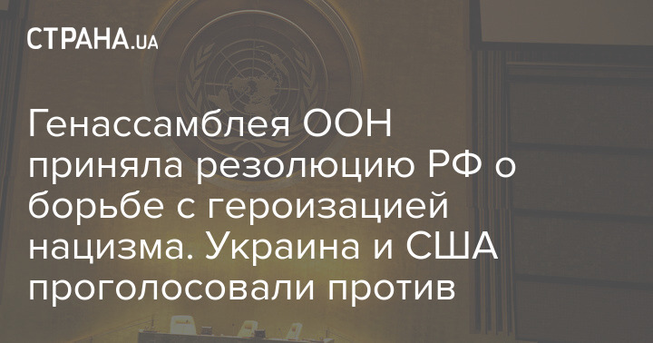 Генеральная ассамблея ООН на заседании 16 декабря приняла российский проект резолюции о борьбе с героизацией нацизма, который был одобрен комитетом Генассамблеи в ноябре. За документ проголосовали 130 стран, США и Украина традиционно высказались против. 51 государство, включая Австрию, Бельгию, Болгарию, Эстонию, Францию, и Турцию, воздержалось.