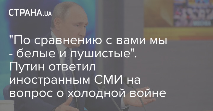 Президент России Владимир Путин, отвечая на вопрос от иностранных СМИ, считает ли РФ себя ответственной за возобновление холодной войны, заявил, что по сравнению с ними, РФ "белая и пушистая".