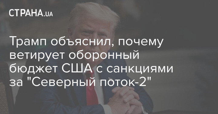 В четверг, 17 декабря, президент США Дональд Трамп подтвердил, что применит право вето к проекту закона об оборонном бюджете США с санкциями против "Северного потока-2" и объяснил в чем причина его решения.