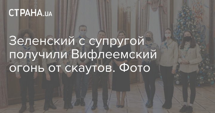 Президент Украины Владимир Зеленский вместе с первой леди Еленой Зеленской встретились с представителями скаутской организации и получили от них Вифлеемский огонь.