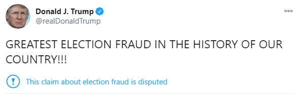 "Это утверждение о фальсификации выборов оспаривается", - подписывается каждый твит Трампа, в котором есть неточные данные.