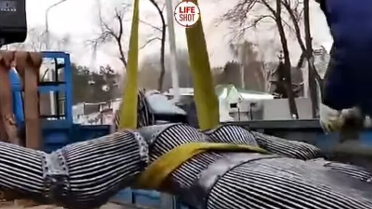 Видео снятия монумента с места опубликовал Телеграм-канал LIFE SHOT.